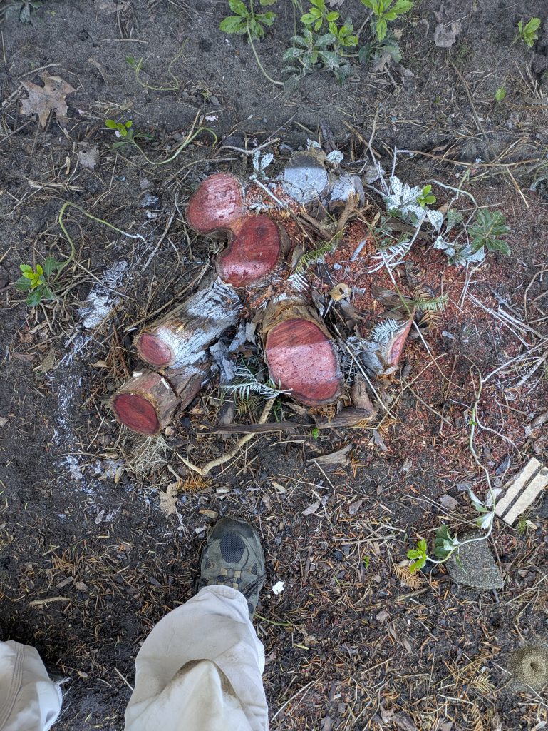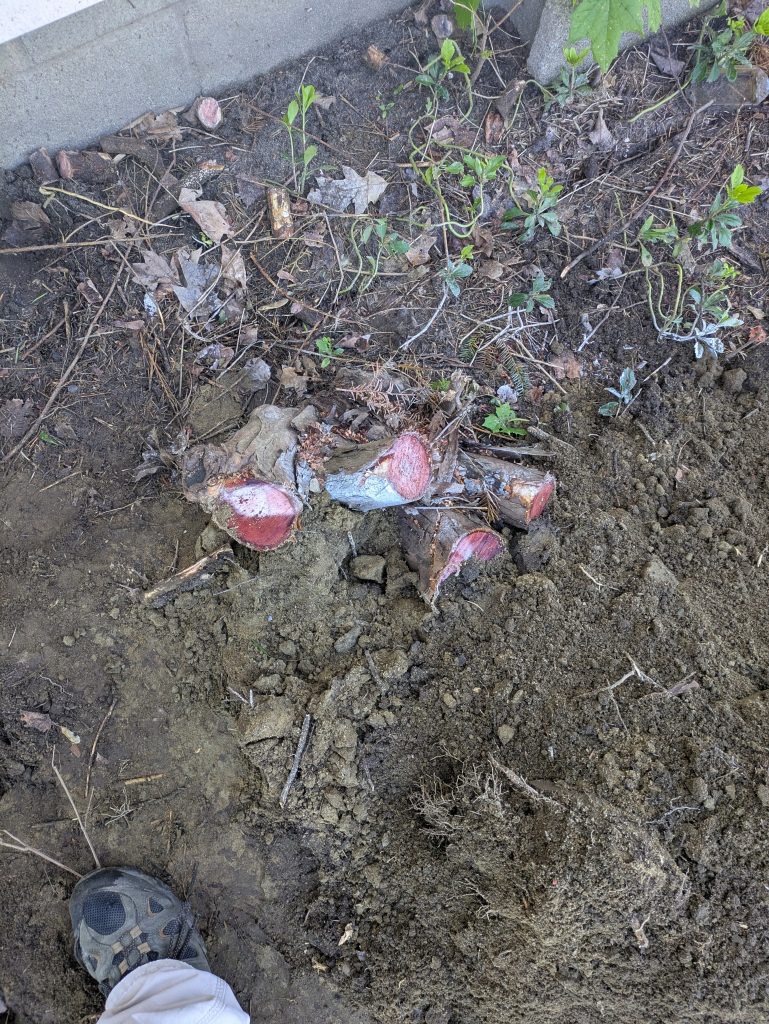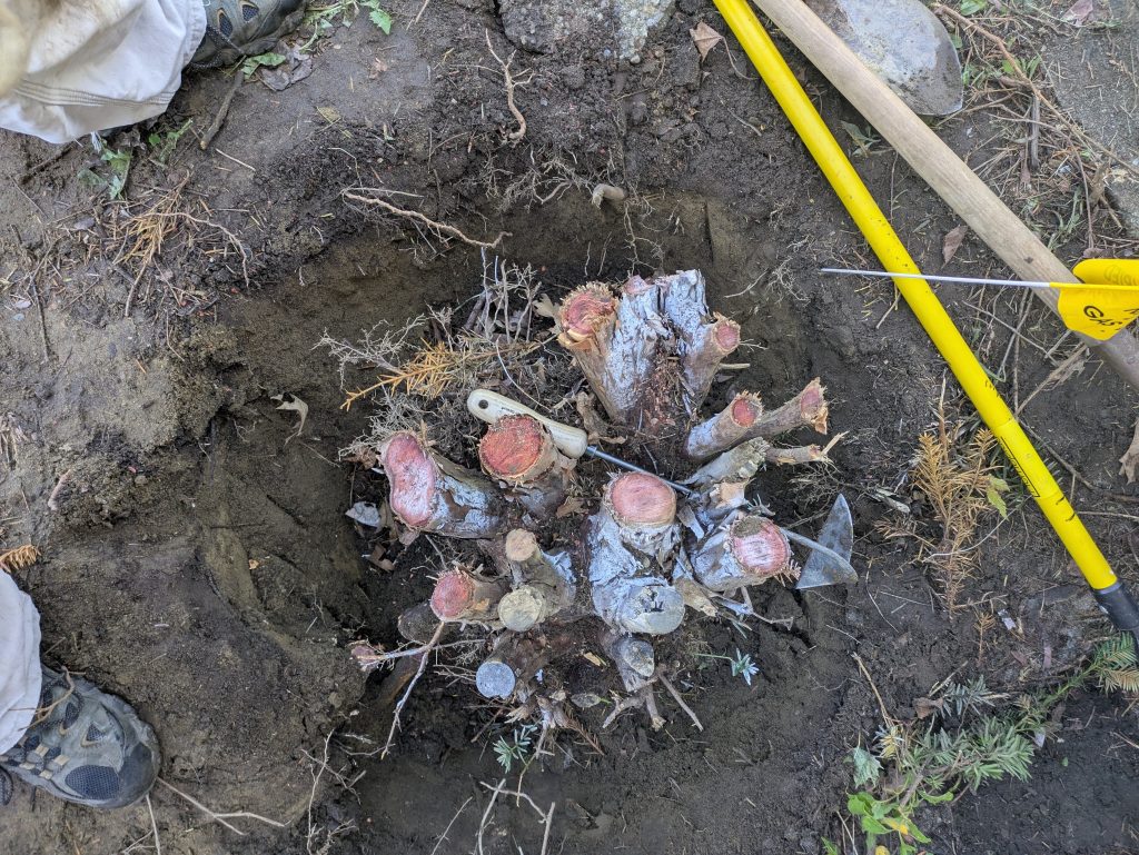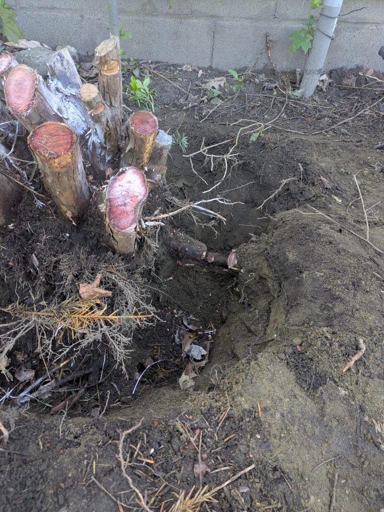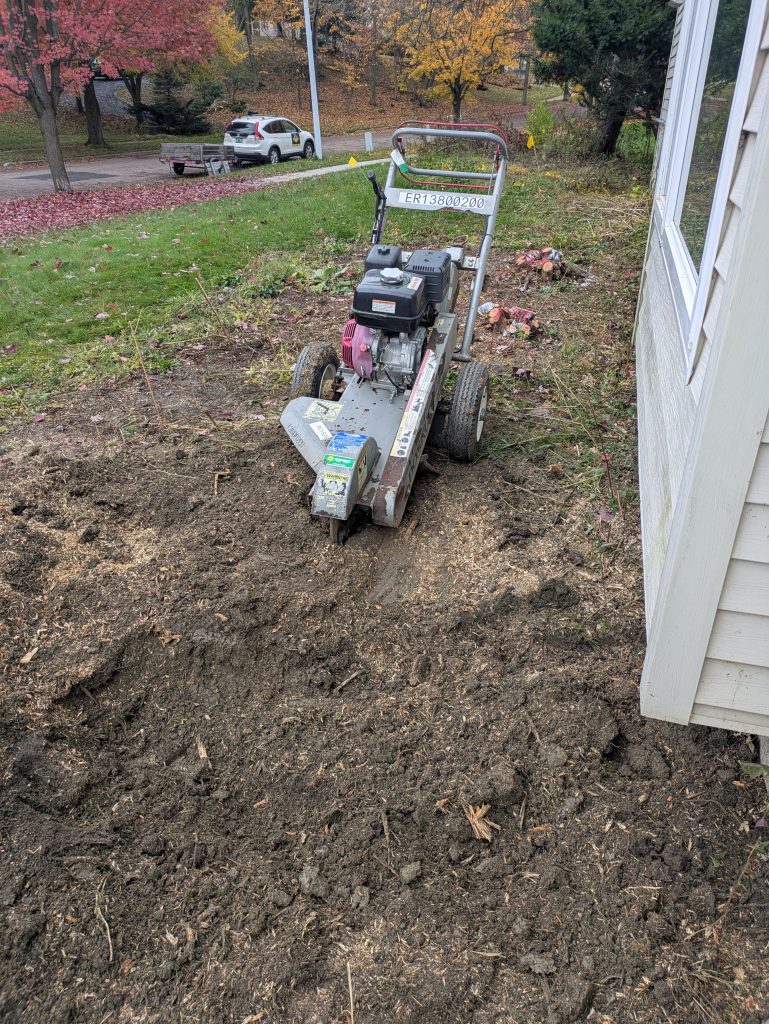 - Ground out the stumps of 3 large cedar shrubs