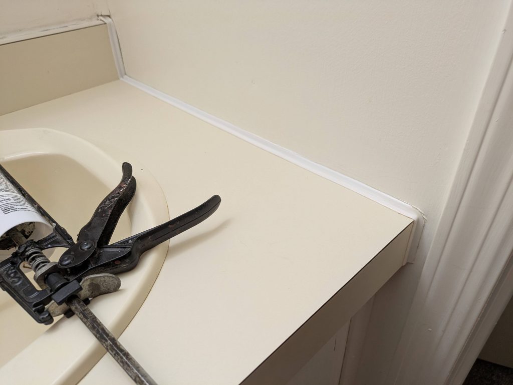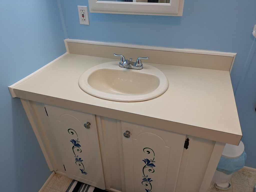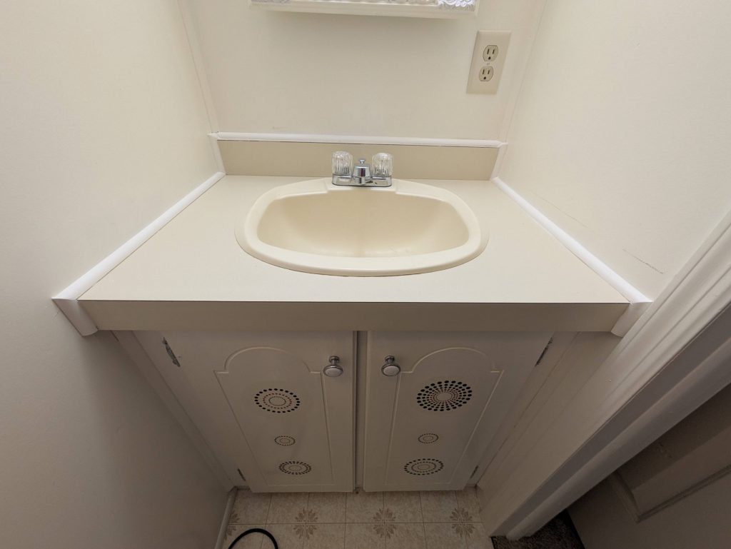 - Removed and replace trim between counters in 2 baths and the kitchen of a manufactured home.