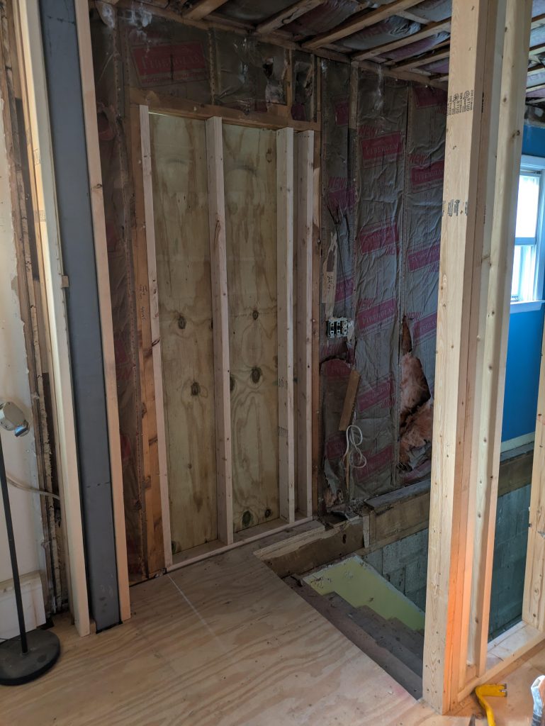 - Removed an exterior door from a brick wall, framed the new exterior wall fill.