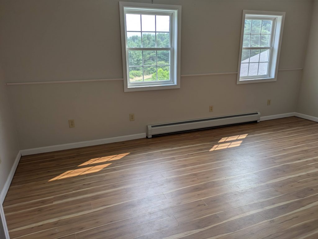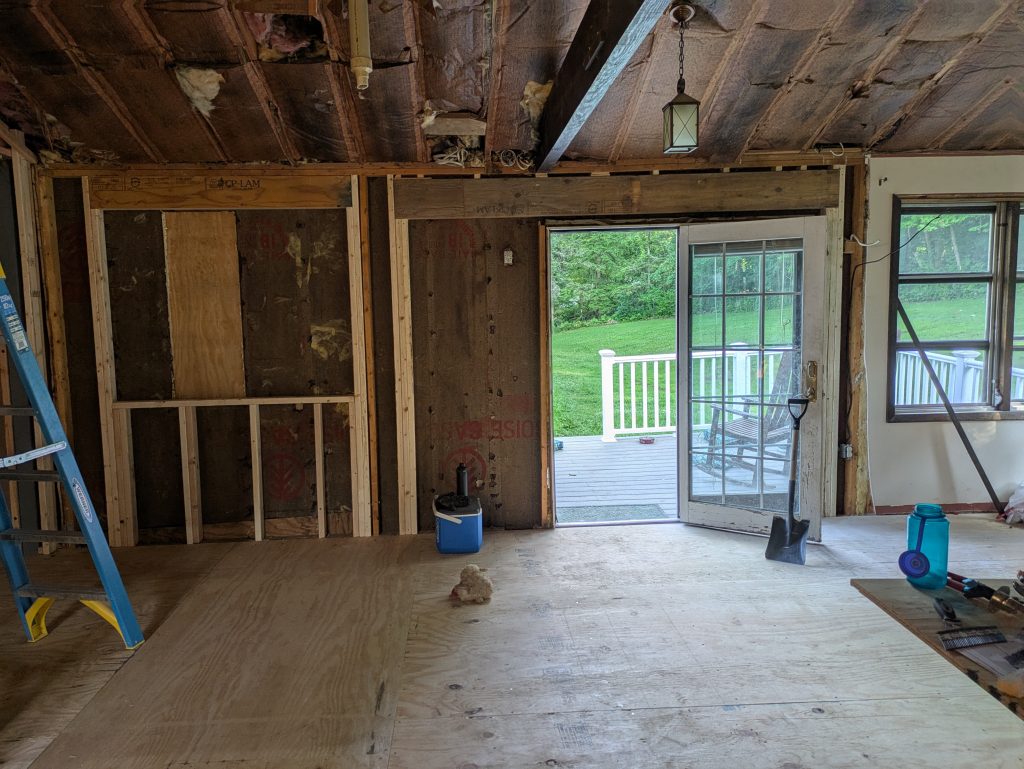 - Installed 24 sheets of ¾” sub-floor, framed out interior walls, re-framed exterior wall to create opening for new windows and door placements.