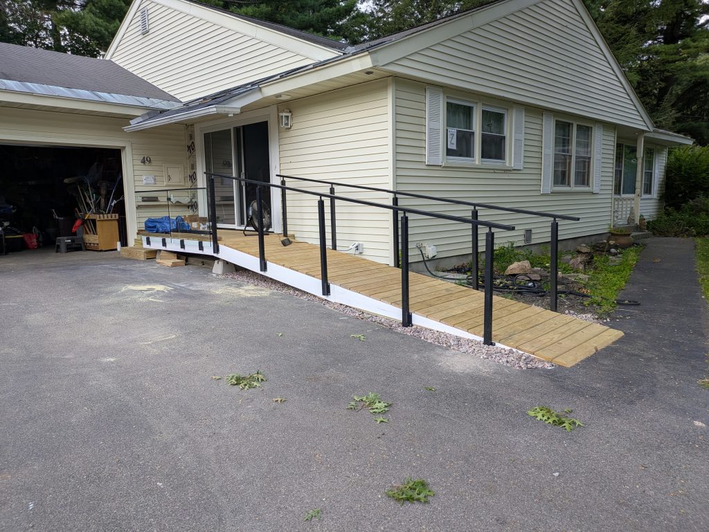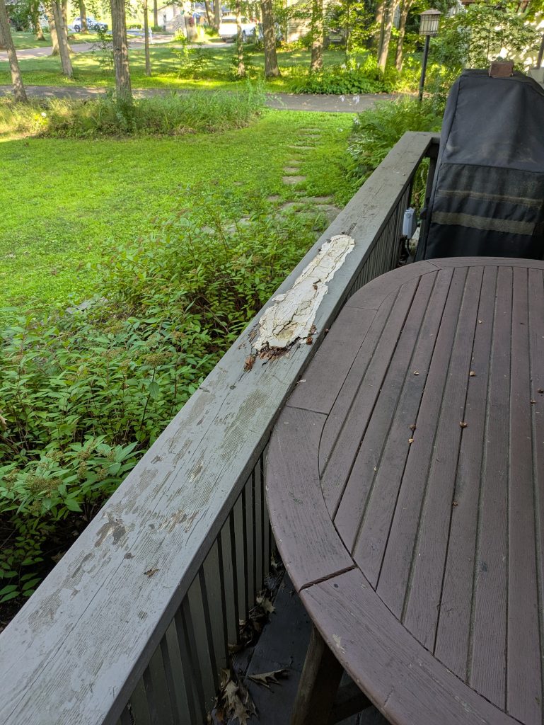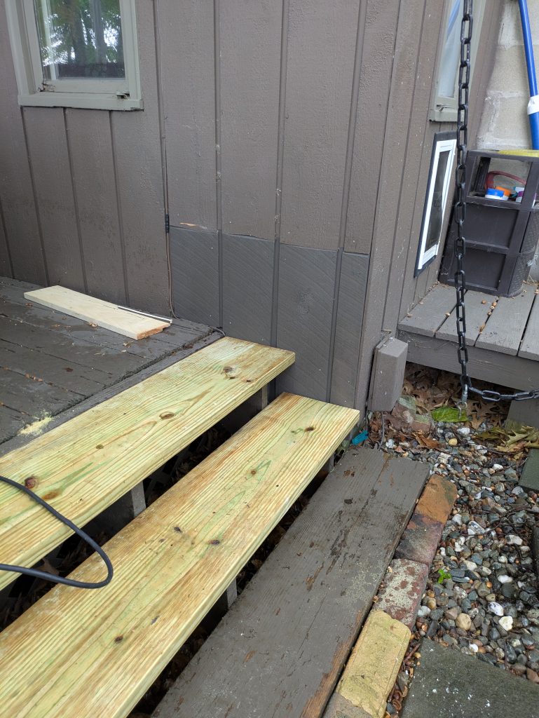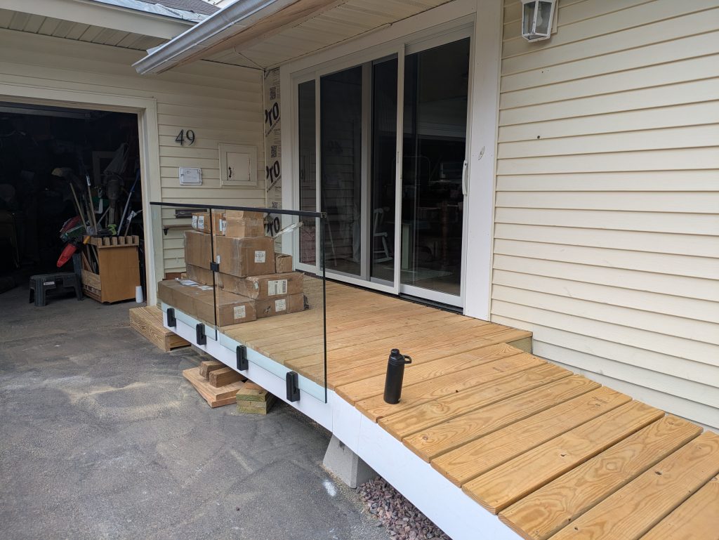 - Replaced 2×6 railing on ~35’ of deck, including fitting around existing posts.