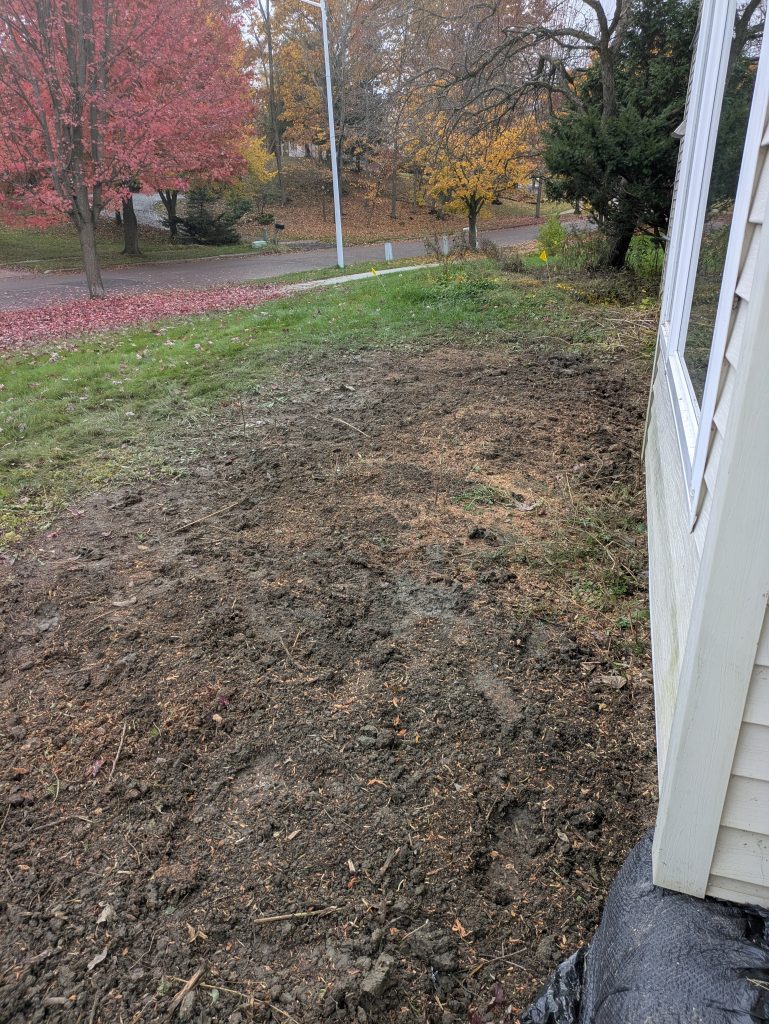 - Removed over-grown shrubs, handled disposal, ground out the stumps.