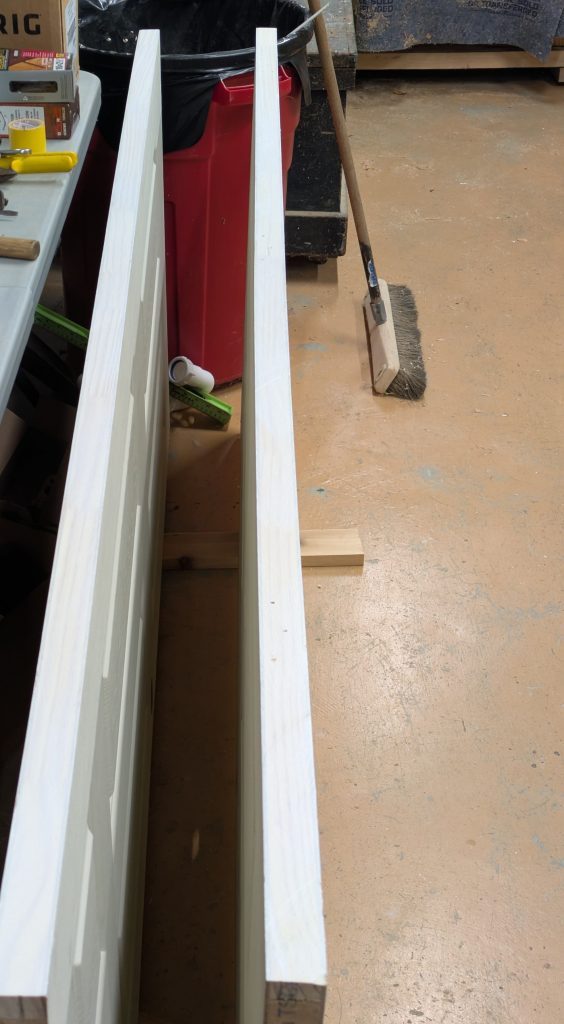 - Trim and cut hinges on 2 solid core doors, install to replace existing hollow core doors.